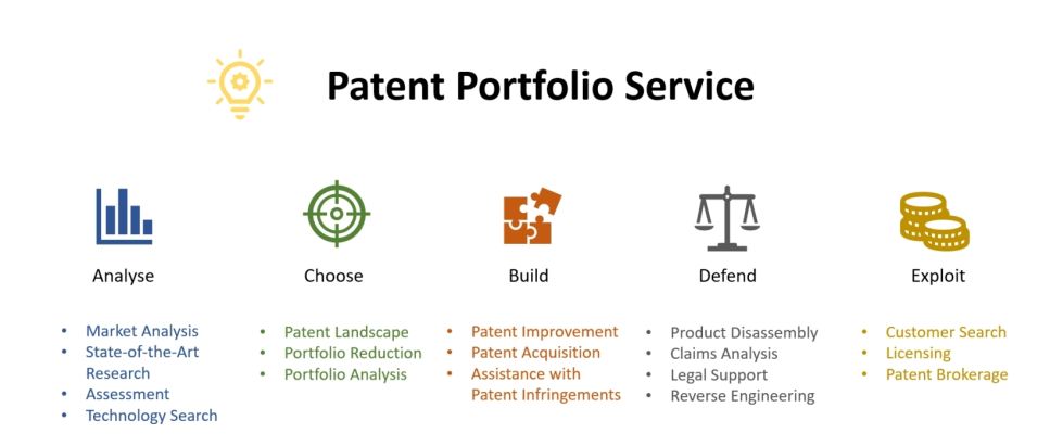 The management of a patent portfolio involves various tasks, each of which deals with different “stages of maturity” of a patent or patent family. The first step in building a patent portfolio is analysis: What does the market say, what is the state of the art, how do I assess the prospects of success, and what comparable technologies are there? The next step is to gain an overview of the patent landscape, possibly dismantle existing portfolios, analyze new portfolios, and decide on a defensive or aggressive patent strategy when it comes to building a new portfolio. When building a patent portfolio, existing patents can be improved against attacks from competitors, and new related patents can be acquired to expand and strengthen the patent family. A broad, internationally registered patent portfolio helps to quickly identify patent circumvention and patent infringements and take action against them before competitors manage to establish a market with imitations. Existing patents are always vulnerable to attacks, whether through reverse engineering (replication through reverse development) and product disassembly, or patent infringement. Particularly in areas where high profits are generated and penalties for patent infringements are comparatively low, such as in the biotech and pharmaceutical industries, existing patents are subject to circumvention and, above all, non-compliance. In such cases, it is important to take countermeasures in good time and, even if legal proceedings are expensive and time-consuming, to initiate them immediately with the help of specialist law firms before the damage caused by the competition becomes immeasurable. Since patents, like fine wines and cheese, become more expensive after they are registered, it only makes sense to hold patents if they are financially viable, i.e., if they can be sold or licensed. Therefore, a thorough customer search must be conducted in a timely manner for each patented product.